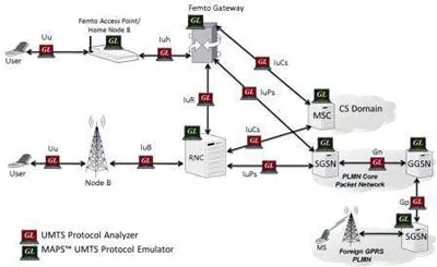 La suite de test UMTS de GL Communications consiste tanto en un analizador como en un emulador de protocolo UMTS que cubre todas las principales interfaces de la red UMTS.