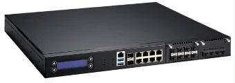 Esta plataforma de montaje en rack 1U se presenta con diversas opciones I/O, incluyendo un par de USB 3.0, una consola de tipo-RJ, ocho RJ-45 y dos puertos 10GbE. También cuenta con un slot PCI x8 para expansión. Un indicador de actividad LCM en el frontal posibilita un seguimiento conveniente de alimentación y actividad de HDD.