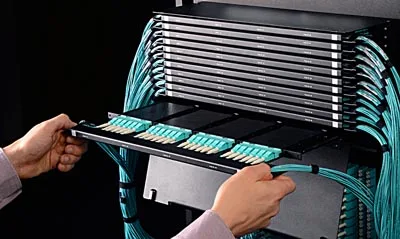 La gama de armarios para sistemas de fibra H+ forma parte del sistema de cableado de fibra óptica de alta densidad CABLExpress Skinny-Trunk Solution.