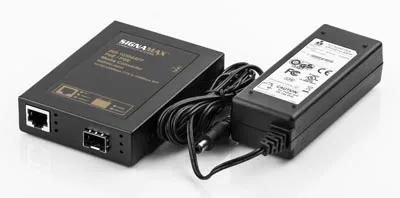Este convertidor cobre a fibra PoE/PoE+ 10/100/1000BaseT/TX a 1000Base SFP alimentado a través de corriente AC combina los datos recibidos sobre un enlace de fibra óptica con una potencia de 25,5 Vatios a través de un cable de categoría 5 o mejor de 100 metros de largo siguiendo el estándar PoE+ IEEE 802.3at, con lo que puede alimentar a un dispositivo compatible en substitución de un adaptador de corriente independiente.