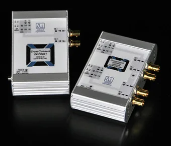 Por otro lado, el segundo de los convertidores de señales ópticas a eléctricas se titula EOP0002C01 y es un cuádruple convertidor óptico-eléctrico 3G/HD/SD-SDI que realiza el tipo de conversión de cada sección dependiendo del módulo SFP que se instala en su receptáculo, al igual que el anterior modelo, pudiendo funcionar como convertidor óptico-eléctrico o eléctrico-óptico de cuatro señales.
