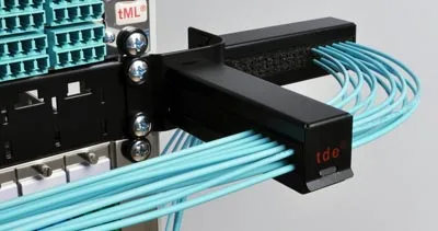 La solución para la gestión de cables con descarga de tracción tPM desde trans data elektronik (tde) es un sistema patentado que ofrece más orden y una IT más verde en los centros de datos, ya que permite un recorrido de los cables de fibra óptica y un cableado de los cables de interconexión de par trenzado organizado y flexible en los racks distribuidores de la red.