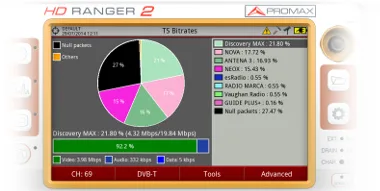 La nueva actualización del software del medidor de campo HD Ranger 2, fabricado por la firma Promax, incluye nuevas utilidades y mejoras, entre ellas la grabación de Transport Stream que permite almacenar los datos como si se tratara de una emisión en directo.