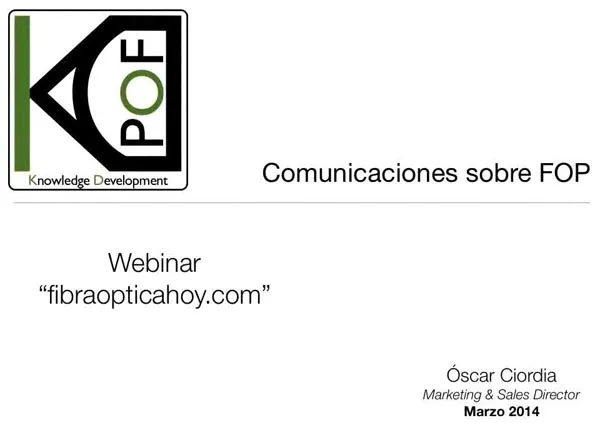 Ya está disponible la grabación del Webminar comunicaciones FOP (fibra óptica de plástico) que realizó la compañía española KDPOF para nuestra editorial. En esta grabación se puede aprender los principios de su nueva tecnología POF Gigabit Ethernet con proceso CMOS de 65 nm, que ofrece formato compacto y bajo consumo.