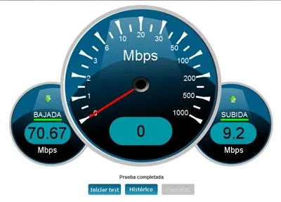 Para esta prueba realizada por cable utilizamos el analizador de velocidad de la compañía telefónica y, si bien de bajada no obtenemos los cien megas, podemos comprobar que alcanzamos casi los diez megas de subida lo cual nos permitirá descargar archivos a una velocidad muy buena.