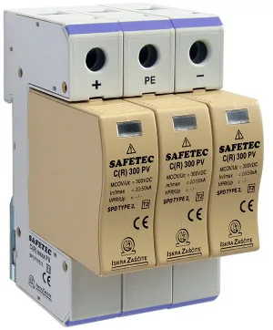 • La gama SAFETEC C PV, que aporta una gama de protección de Clase II, tiene el objetivo de salvaguardar zonas 1 – 2 IEC 62305 ante descargas inducidas. Su diseño plug-in facilita el reemplazo in situ de módulos dañados sin necesidad de alterar el sistema de cableado. Al igual que los modelos de protección ante sobretensiones Clase I y II SAFETEC B, impide la formación de arcos internos, que derivarían en incendios, debido a su control térmico patentado. Por lo tanto, cualquiera de estos modelos aporta unas magníficas prestaciones al mismo tiempo que ayuda a eliminar los costes asociados a la instalación de fusibles y portafusibles adicionales.