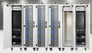 Este rack, pintado al RAL 9002, puede incorporar en su interior todos los equipos técnicos necesarios para un funcionamiento correcto de un CPD, desde los servidores, cuadros de potencia de electricidad, equipos de refrigeración, equipos de autonomía (SAIs), equipos de control y monotización.
