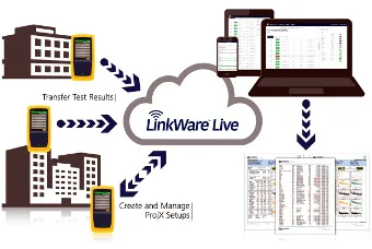 La gestión de las pruebas es muy sencilla. Simplemente hay que cargar los resultados desde el tester a LinkWare Live sobre Wi-Fi y, después, descargarlos para poder generar informes de forma rápida con la aplicación Linkware PC.