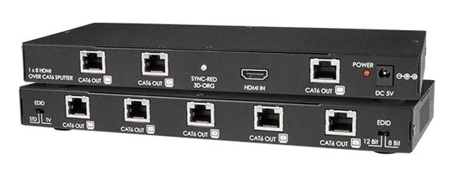 El splitter – extensor HDMI de ocho puertos consta con dos componentes: la unidad de emisión VOPEX-C6HD-8LC HDMI, que se conecta a la fuente de vídeo host, y la unidad remota ST-C6HD-R-130LC para cada display.