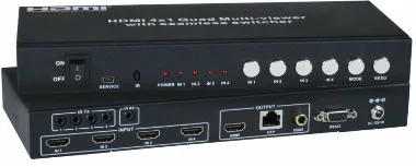 Estas fuentes de vídeo pueden ser mostradas en modo quad, PiP o a pantalla completa, cambiando el modo de vista desde el panel de control frontal, el mando a distancia, o bien mediante la interfaz de usuario accesible mediante un puerto RS232. La señal de salida de audio y vídeo puede extenderse hasta una distancia de más de 76 metros (250 pies) mediante un solo cable CAT6/6a/7.