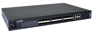 Switch Ethernet Capa 2El modelo CWGE24MS2 de ComNet cuenta con hasta veinte puertos SFP 100 / 1000Base-FX y cuatro puertos combo Gigabit Ethernet que permiten la transmisión TX o FX. Todos los puertos SFP utilizan módulos ComNet SFP para fibra óptica, con su correspondiente tipo de conector y distancia estándar.